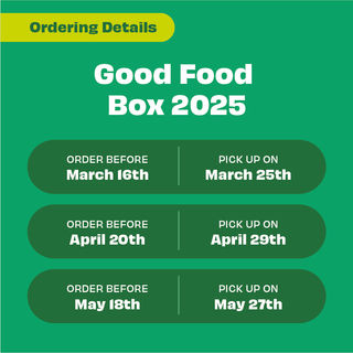 Be sure to place your order on time and pickup your box on pick-up day! Place your order by clicking the button above.